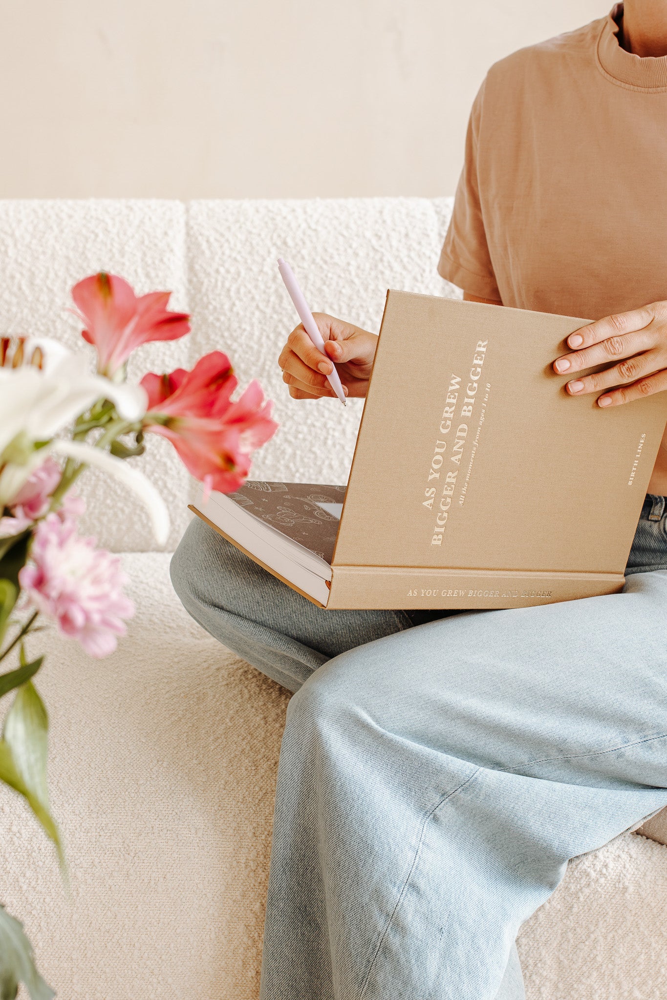 - Luxurious, linen-covered hardback with gold foil lettering in a neutral color