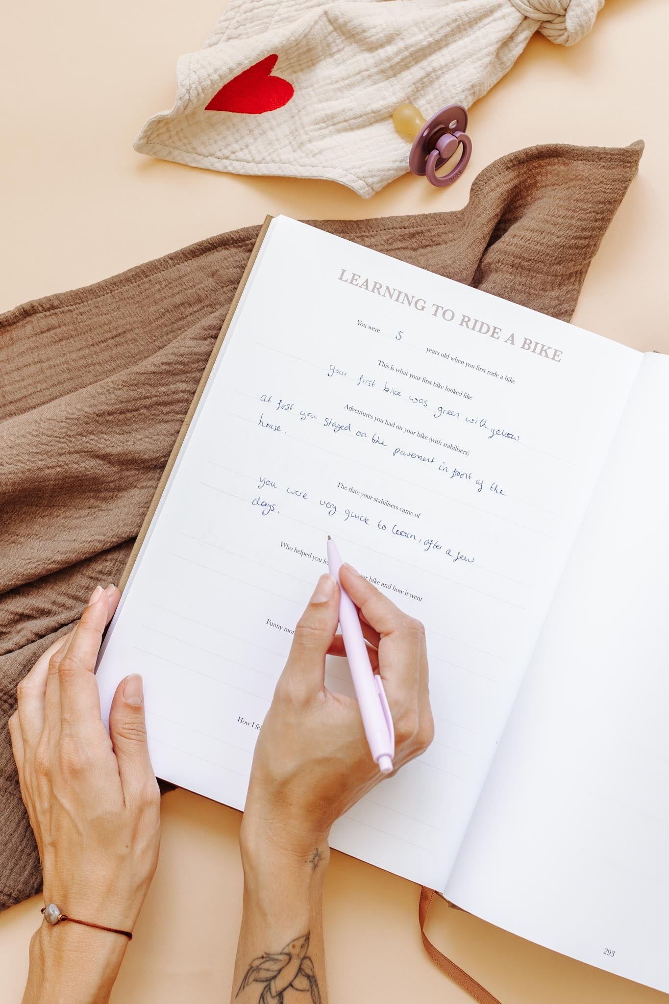 - Use a clean and dry surface when filling in your book, and wash your hands beforehand. This helps to avoid marks or smudges on both the cover and the inside pages.