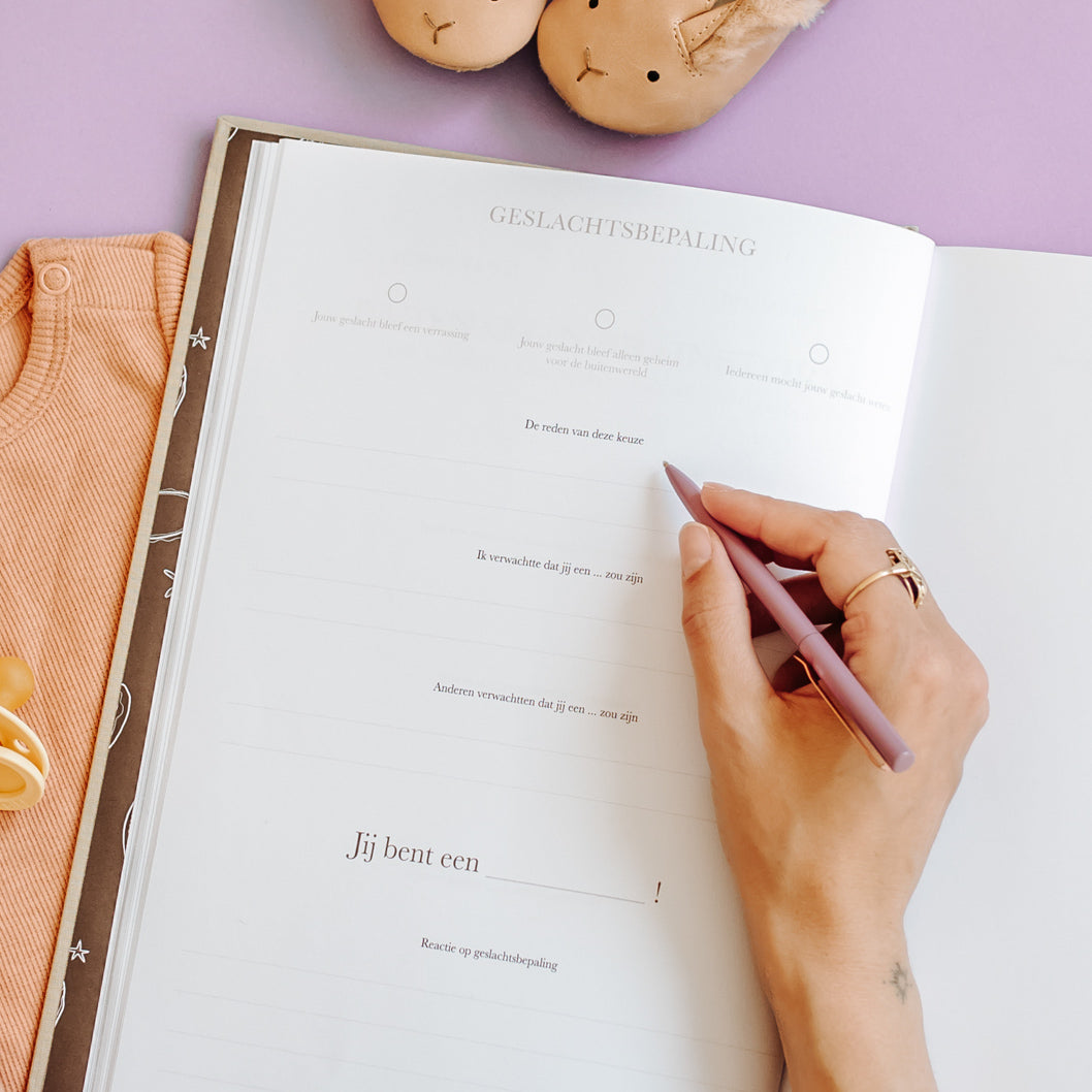 Birth Lines heeft hét invulboek ontwikkeld waarin je alle memorabele momenten en details vanaf de positieve zwangerschapstest tot aan de eerste verjaardag van het kind kunt vast leggen.