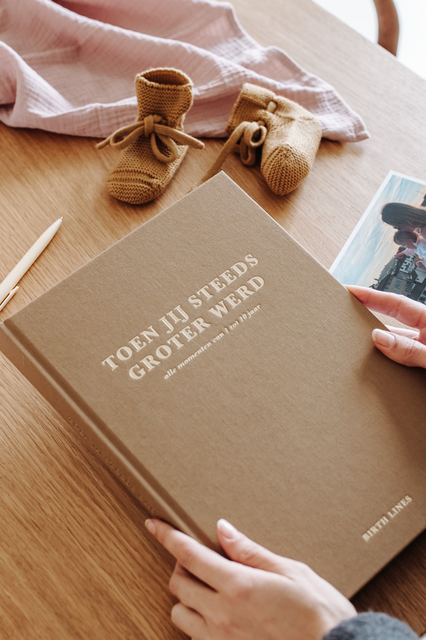 Waar je vaak een los zwangerschaps-, echo-, geboorte-, kraam-, eerste jaar- en fotoboek koopt, zit in ‘Het begin van jouw leven’ alles gebundeld in één groot invulboek.