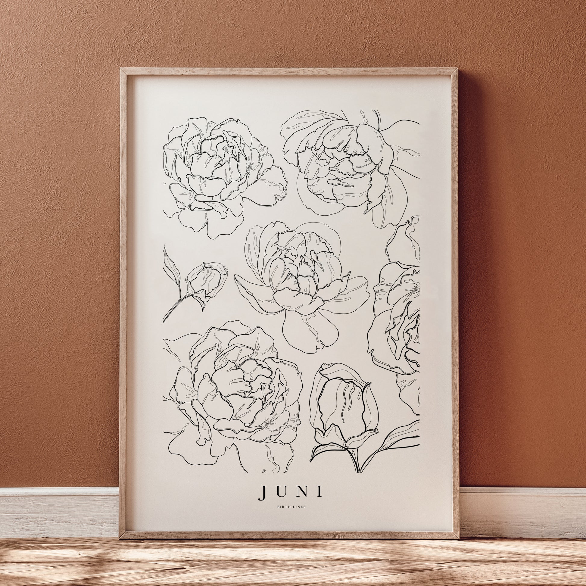 Handgetekende geboortebloemen in de signature Birth Lines stijl, nu als posters verkrijgbaar! Iedere maand heeft zijn eigen 'Birth Flower' die symbool staat voor die desbetreffende maand. Juni heeft als Birth Flower de Roos.